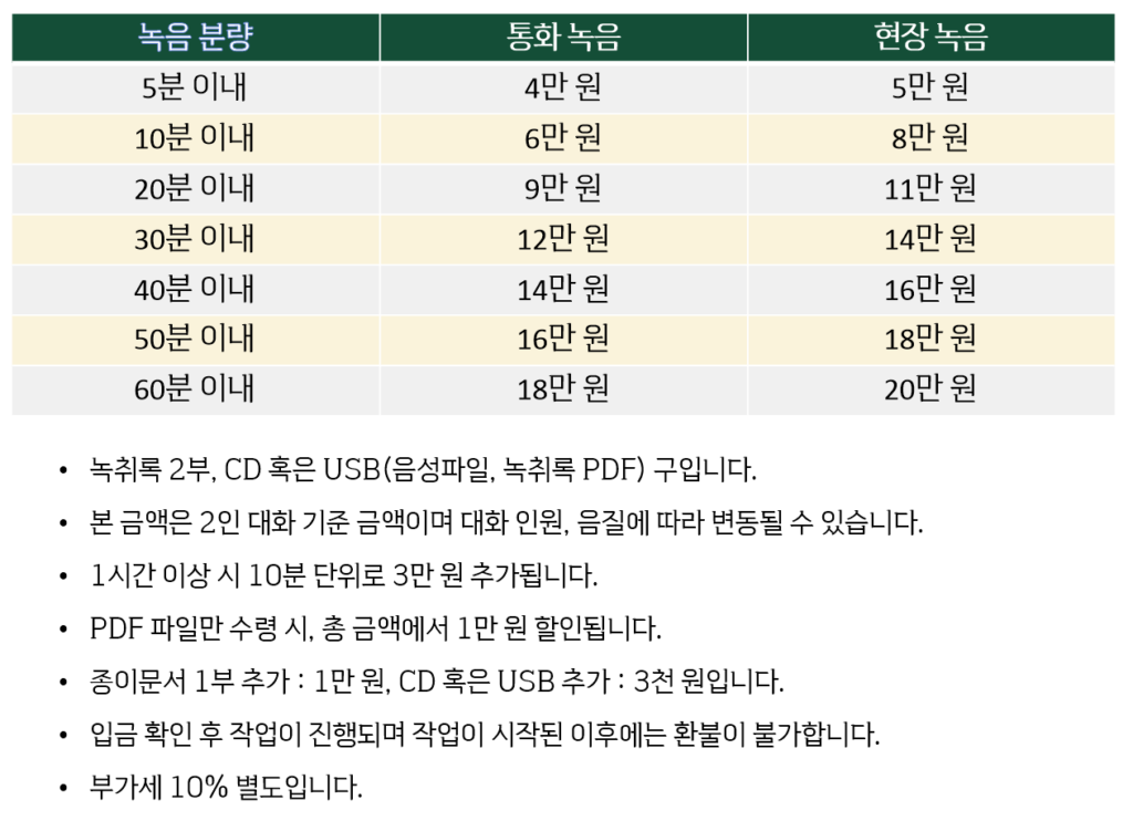 녹취록 요금 안내